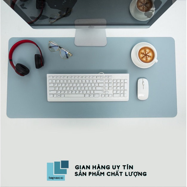 Thảm da PU trải bàn làm việc size 100x50cm loại 01 mặt bo viền LAPACC Deskpad
